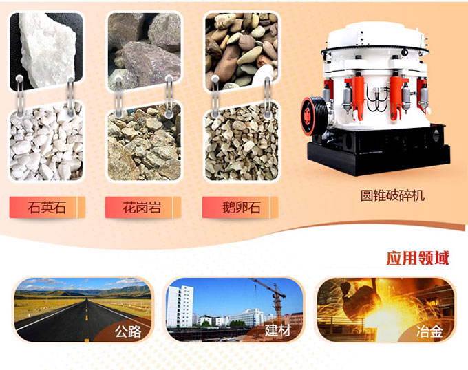 圓錐式破碎機廣泛用于礦山行業、冶金行業、建筑行業、筑路行業、化學行業及硅酸鹽行業,適用于破碎堅硬與中硬礦石及巖石,如鐵礦石、石灰石、銅礦石、石英、花崗巖、砂巖等,具有破碎比大、效率高、產品粒度均勻,耗能低等特點。
